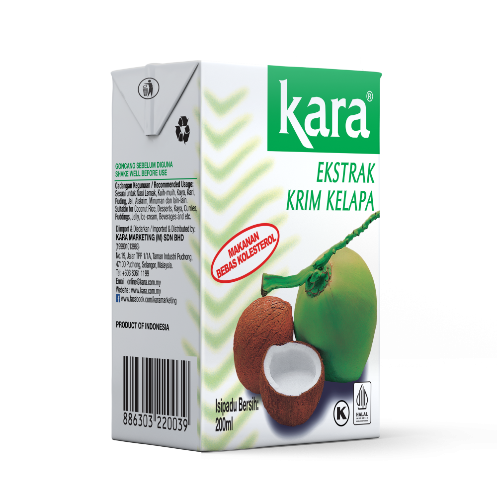 Kara Coconut Cream is a creamy white, sterilized and homogenized product from the natural extract of coconut kernel. It is UHT (Ultra High Temperature) processed and aseptically packed.