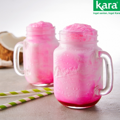 1. In a jug, mix rose syrup and Kara Coconut Cream together, slowly pour in the ice cream soda.